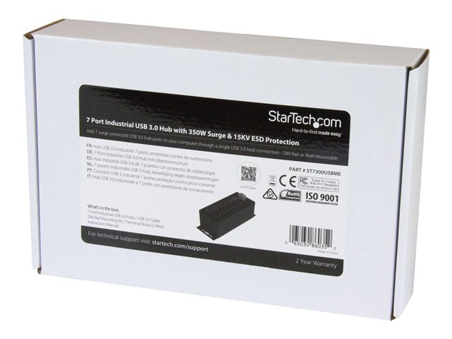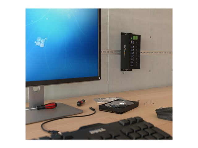 Metal Industrial USB-A Hub with ESD Protection & 350W Surge Protection - Din Rail, Wall or Desk Mountable - TAA Compliant USB Expander Hub (ST7300USBME) - Hub - 7 x SuperSpeed USB 3.0 - DIN rail mountable, wall-mountable - DC power - for P/N: ITB20D3250, USB312SAT3CB, USB315CB2M, USBLT1MWS, USBLT2MBR, USBLTM1MBK, USBLTM1MWH
